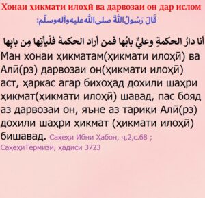 Бисмиллоҳир раҳмонир раҳим قال الله نعالی: وَمَا آتَاكُمُ الرَّسُولُ فَخُذُوهُ وَمَا نَهَاكُمْ عَنْهُ فَانْتَهُوا ۚ وَاتَّقُوا اللَّهَ ۖ إِنَّ اللَّهَ شَدِيدُ الْعِقَابِ.  Ҳар ончӣ Паёмбар(с)...